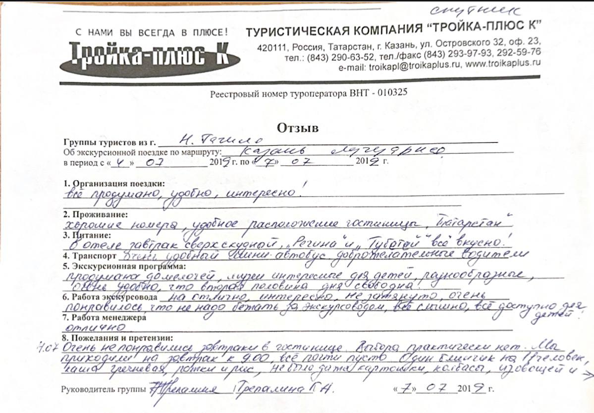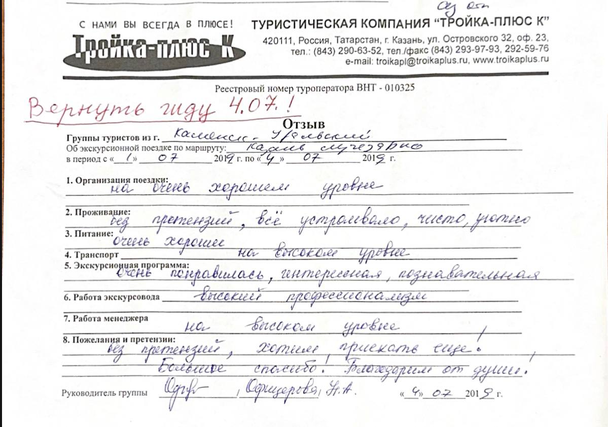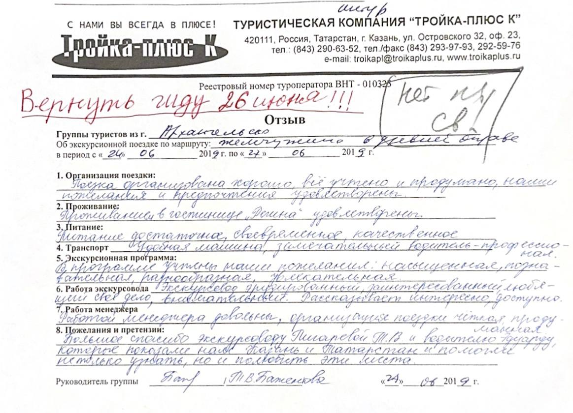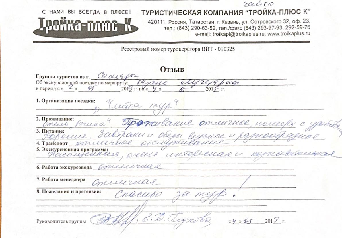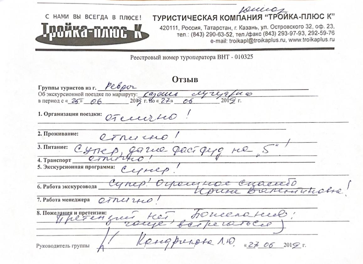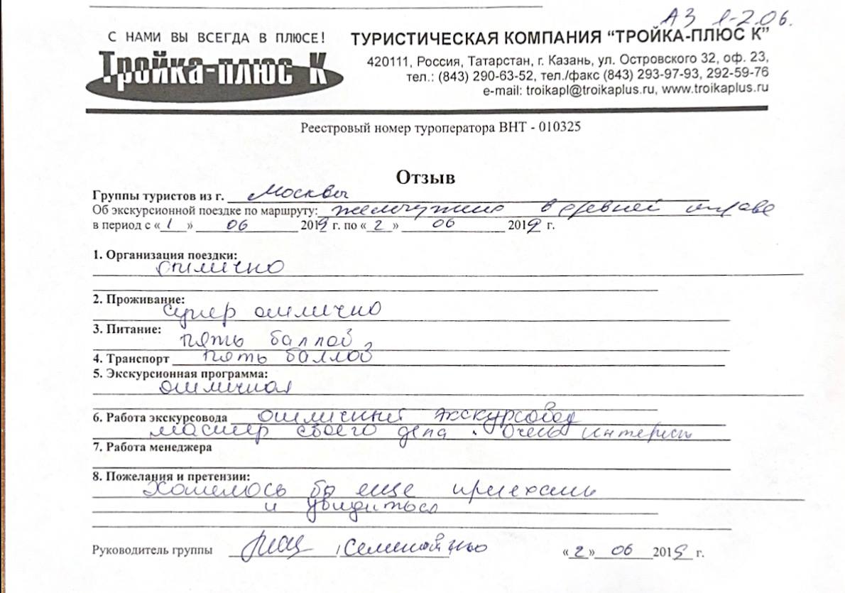 Реальные письменные отзывы туристов. Оригиналы хранятся в офисе компании.