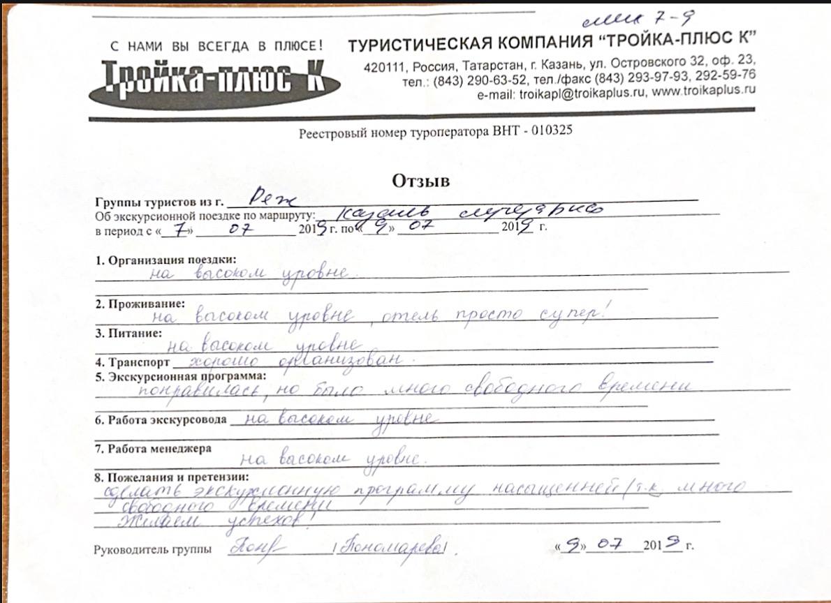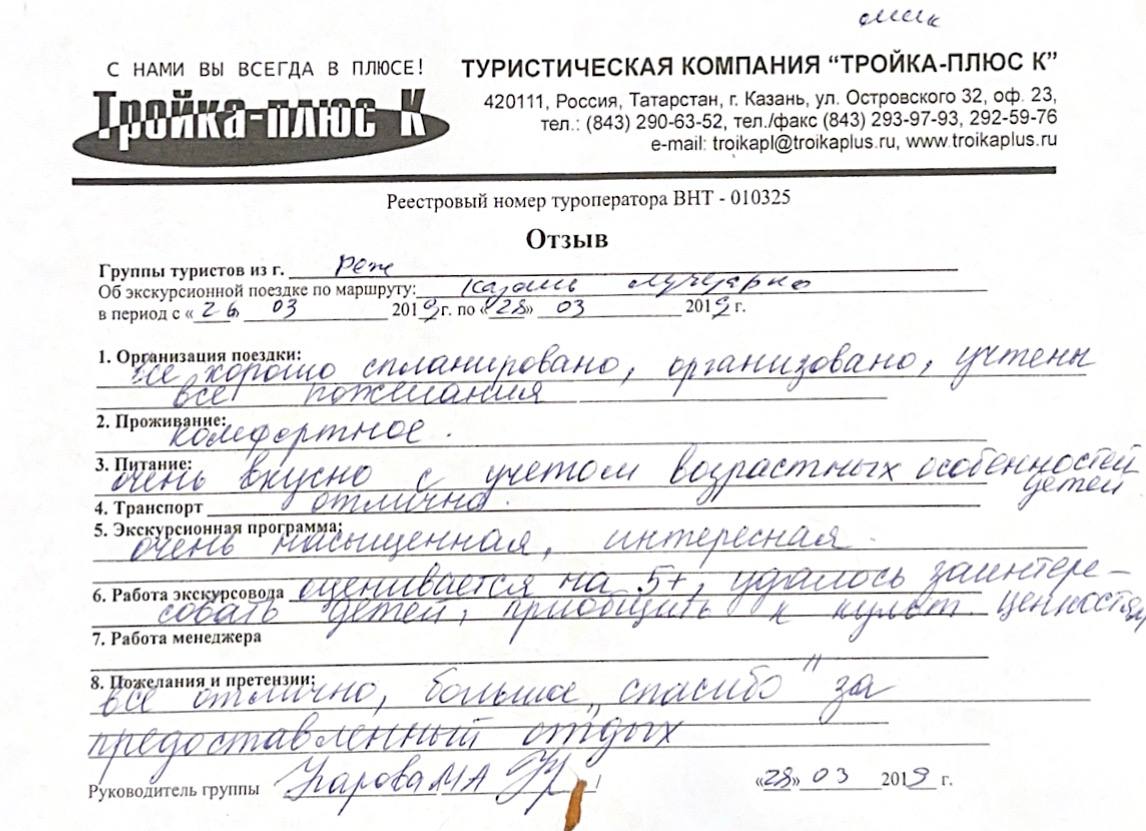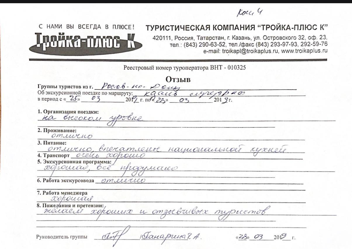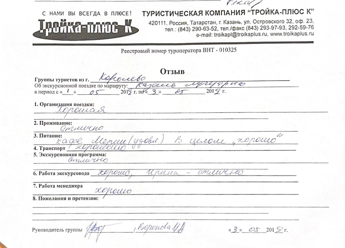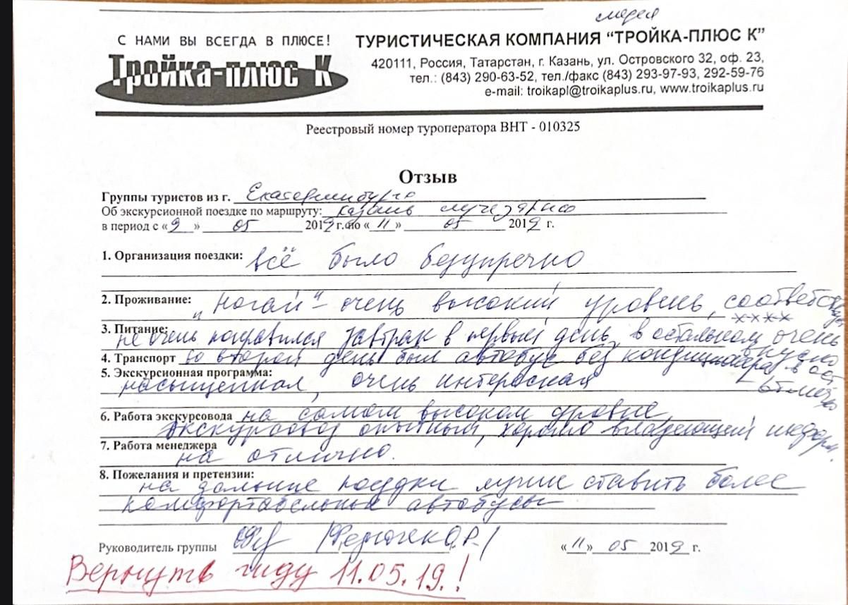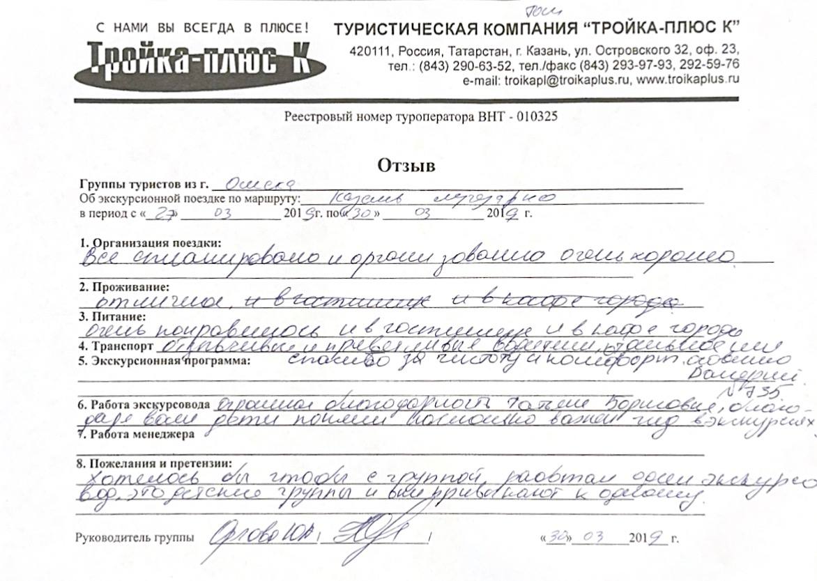 Реальные письменные отзывы туристов. Оригиналы хранятся в офисе компании.
