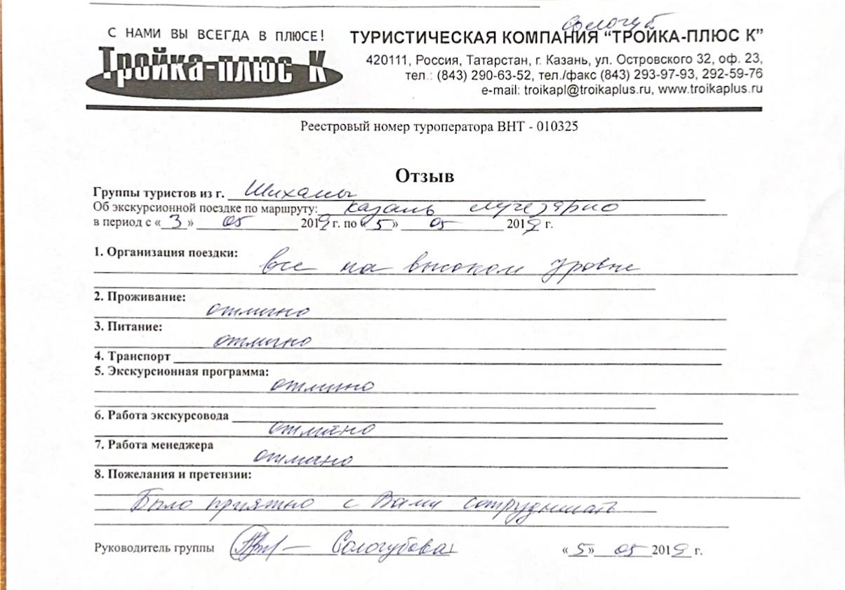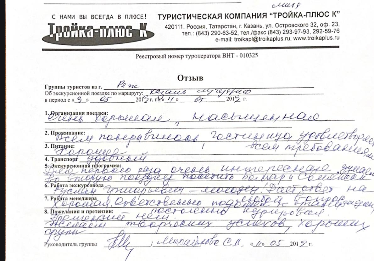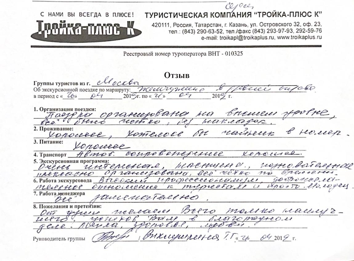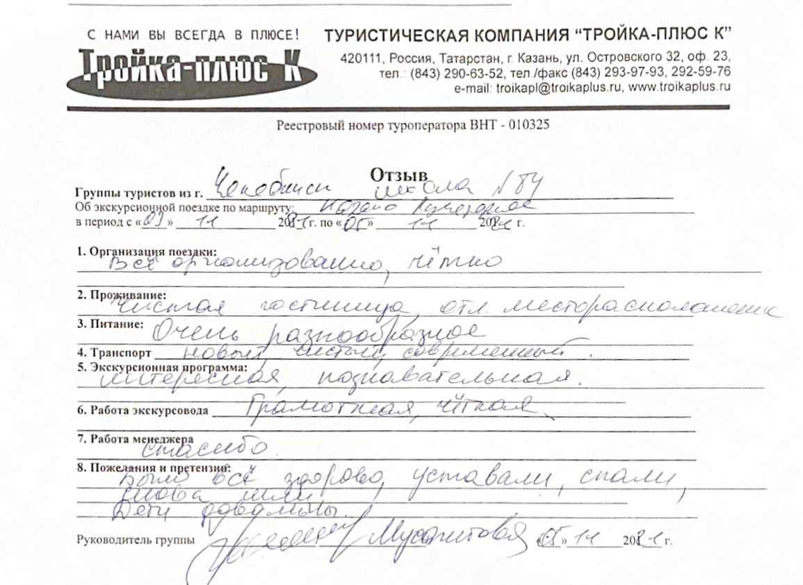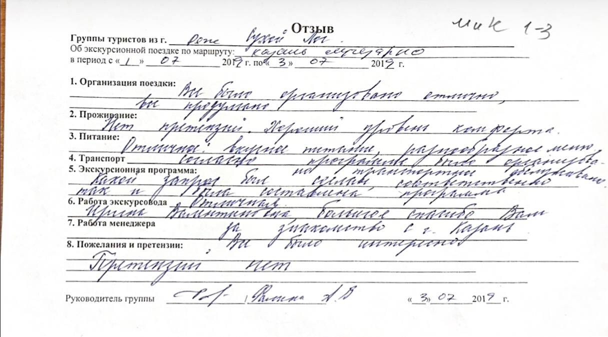 Реальные письменные отзывы туристов. Оригиналы хранятся в офисе компании.