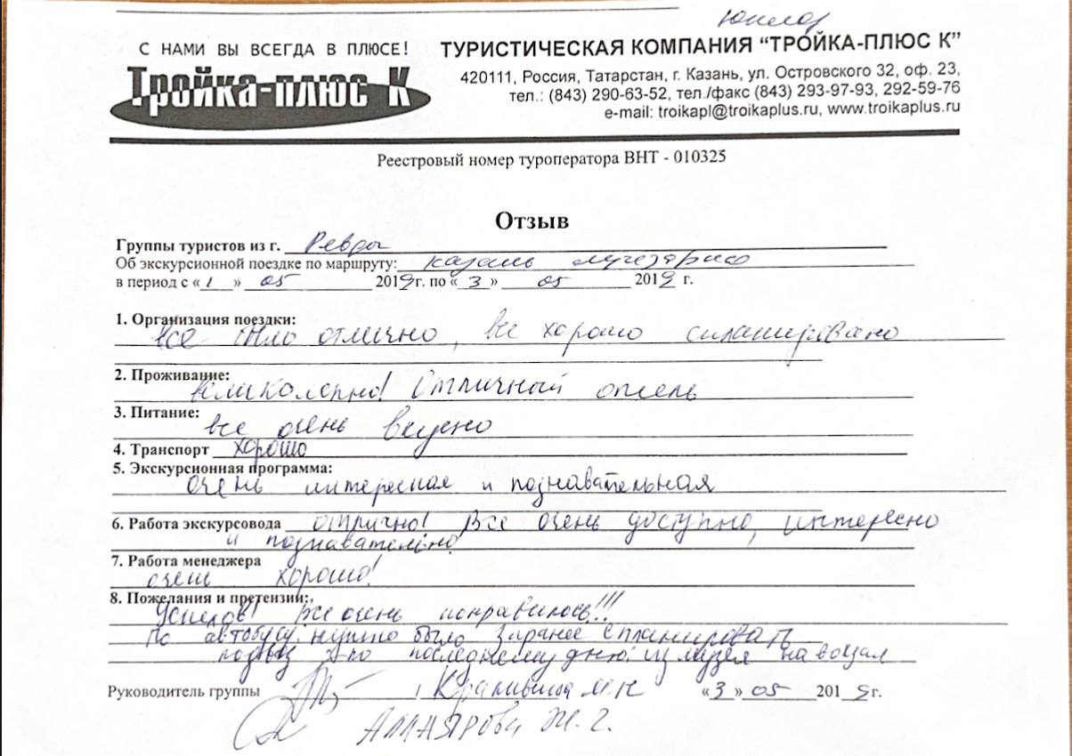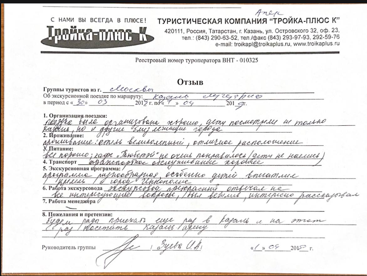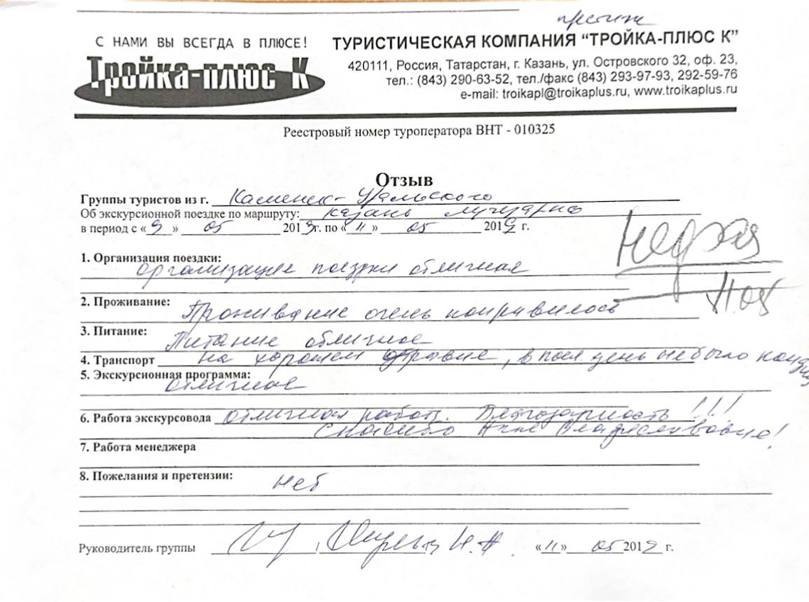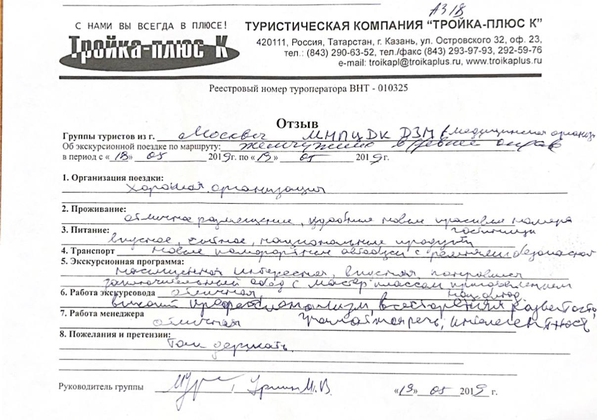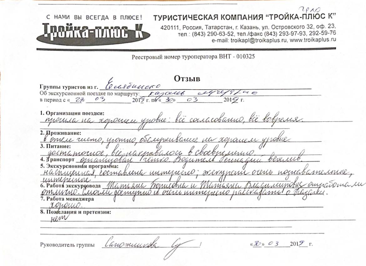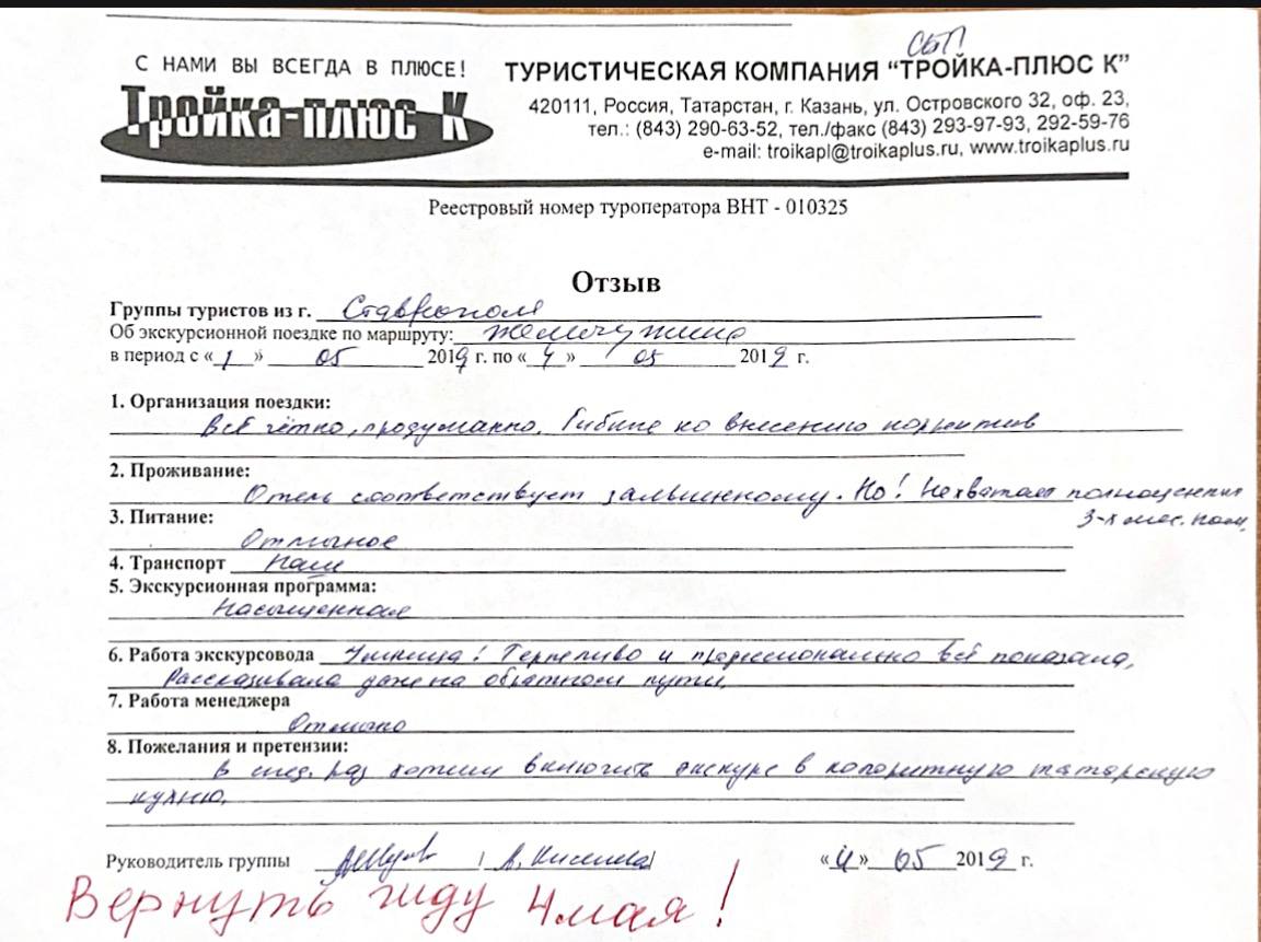 Реальные письменные отзывы туристов. Оригиналы хранятся в офисе компании.