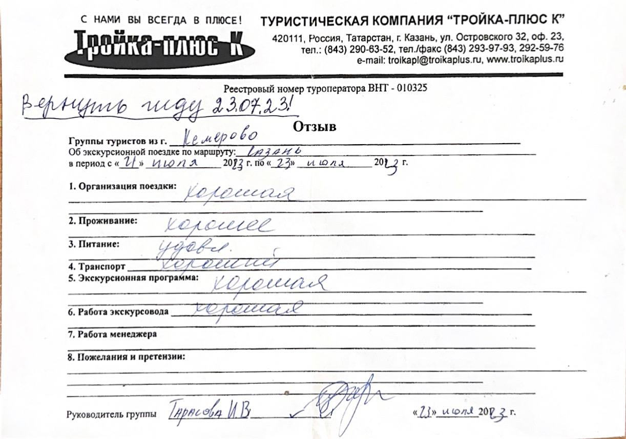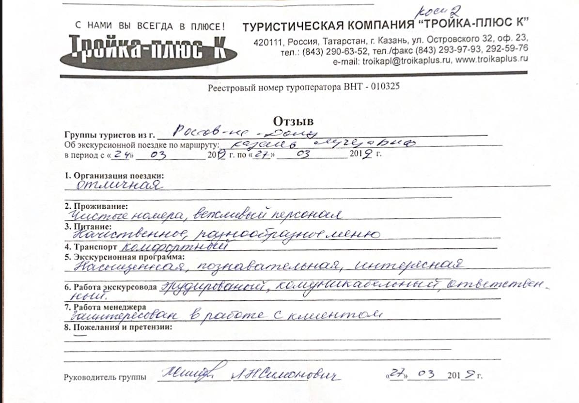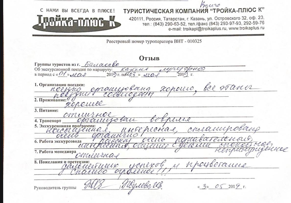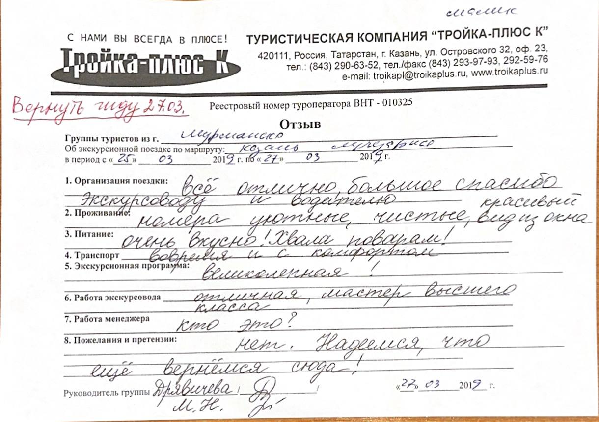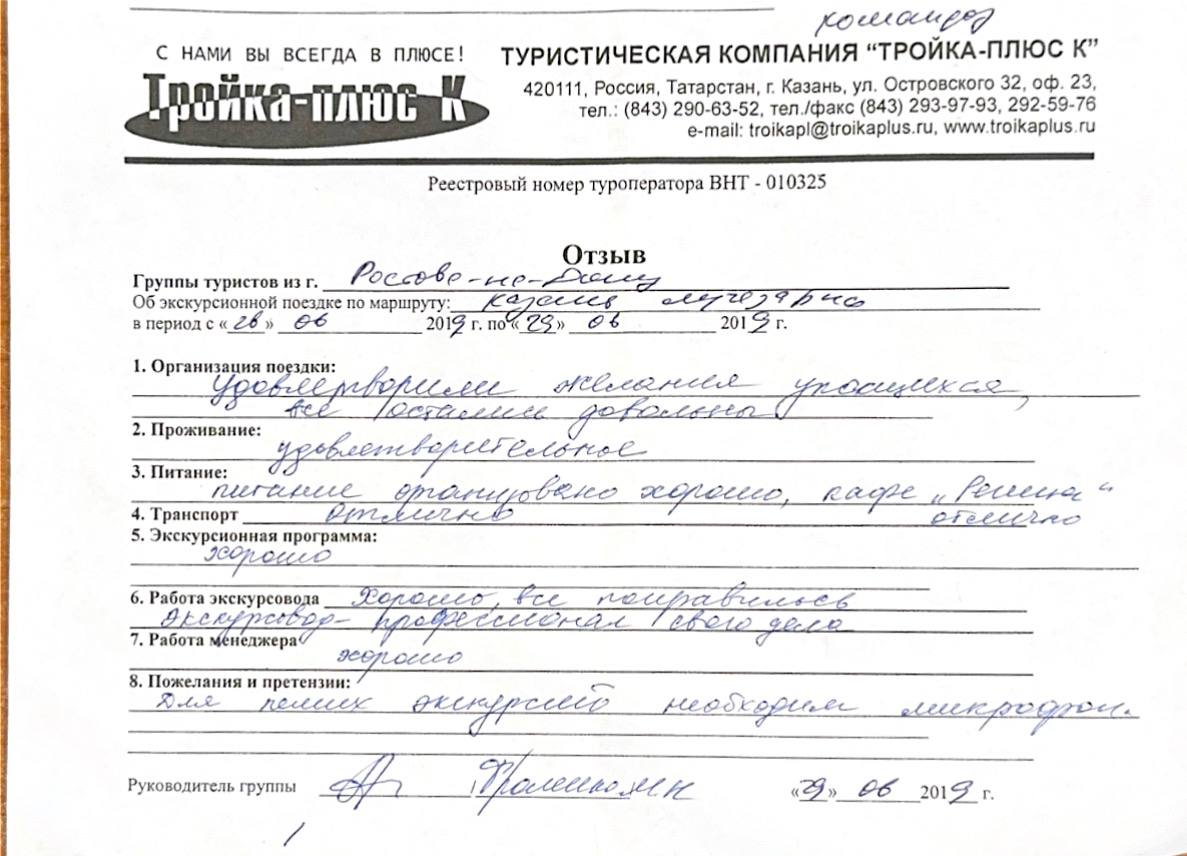Реальные письменные отзывы туристов. Оригиналы хранятся в офисе компании.